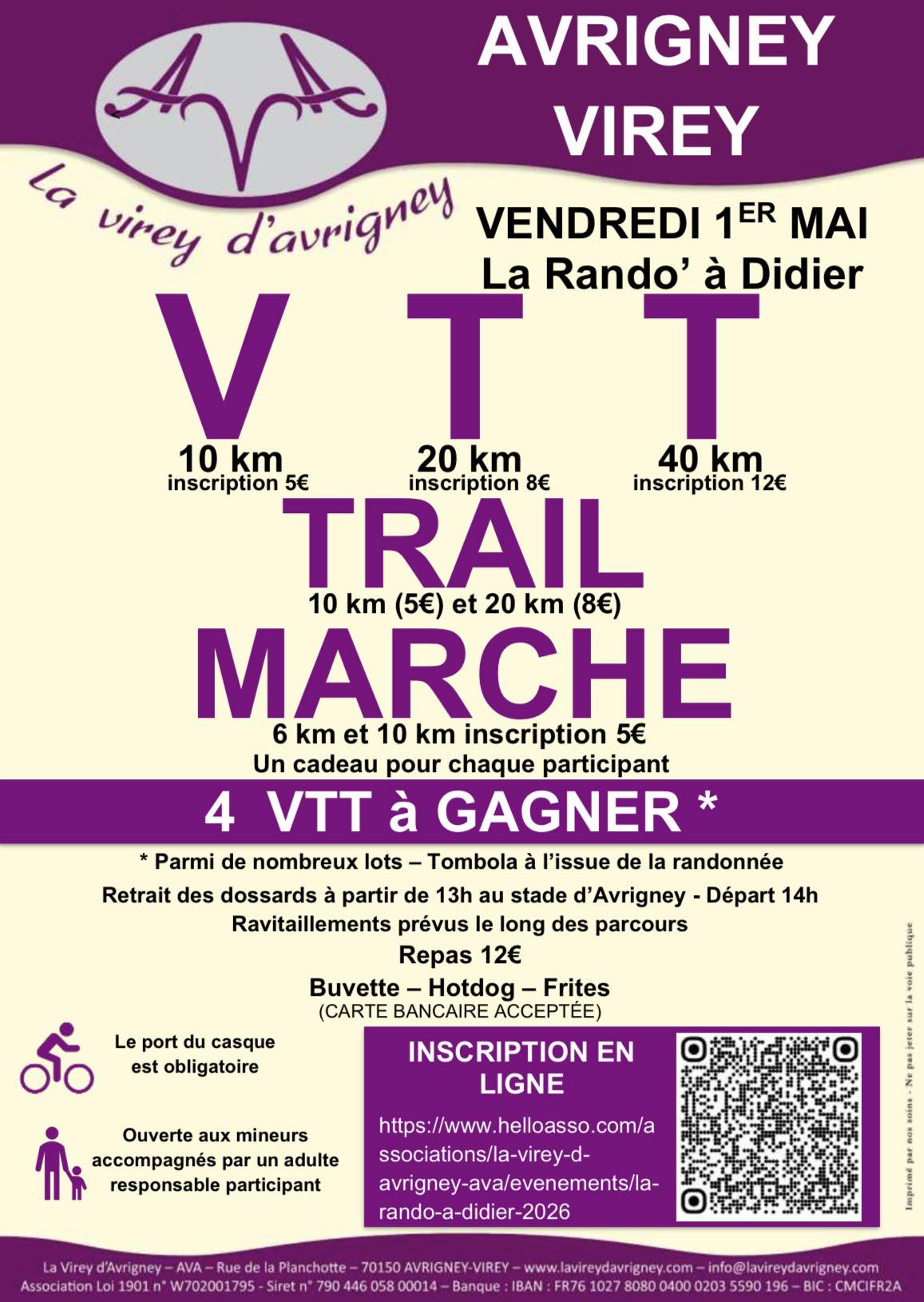 Like every year, the AVA association in Avrigney-Virey is organising a series of rides. The programme includes 10, 20 and 40 km mountain bike rides. Trails of 10 and 20 kms and walks of 6 and 10 kms.